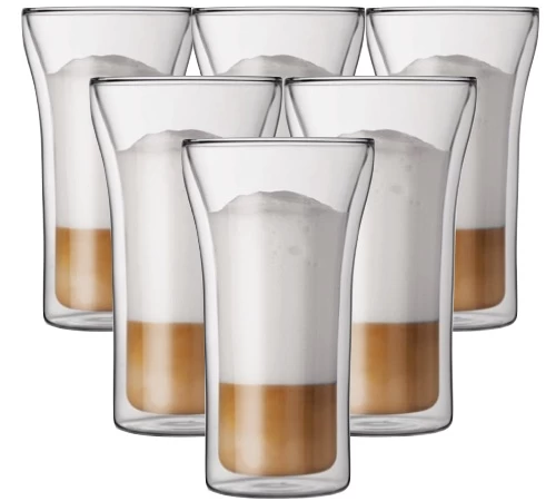 6 verres expresso Assam  double paroi de la marque Bodum de 40 cl. Ils sont également disponibles en 10 cl, 20 cl et 25 cl. Vous pouvez également les trouver en panaché de différentes tailles.