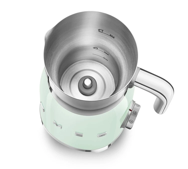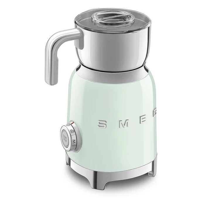 Dernier de la gamme de petits électroménagers, la MFF01PGEU est une chocolatière et émulsionneur de lait au design inspiré des années passées. En équipant votre cuisine de cette Chocolatière SMEG, vous donnerez alors, une touche rétro-chic à celle-ci. Vous allez sans aucun doute apprecier son corps en Inox ainsi que sa structure vert d’eau qui la rend très élégante et vintage.