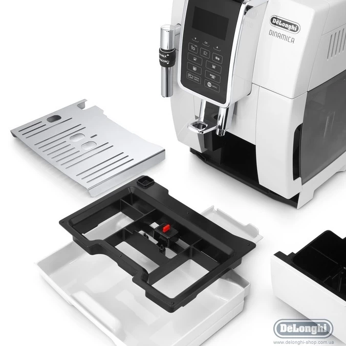 L’égouttoir de la machine à café à grain Dinamica a été entièrement repensé : Avec sa grille intérieure amovible et démontable, l’égouttoir passe au lave-vaisselle pour un entretien encore plus simple.