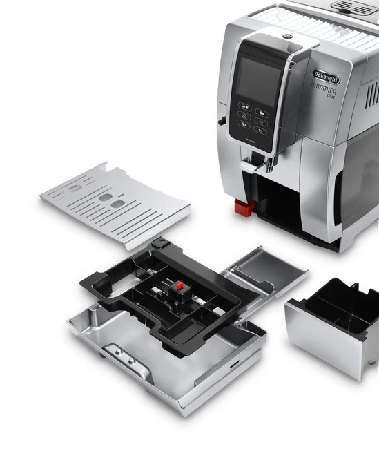 L’égouttoir de la cafetière à grain DeLonghi Dinamica a été entièrement repensé : Avec sa grille intérieure amovible et démontable, l’égouttoir passe au lave-vaisselle pour un entretien encore plus simple.