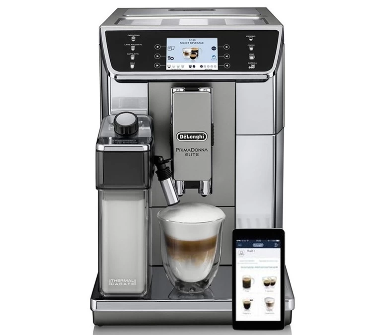 La machine à café à grain Delonghi PrimaDonna Elite 650.55.MS est l’un des tout premiers expresso broyeur Delonghi connecté.