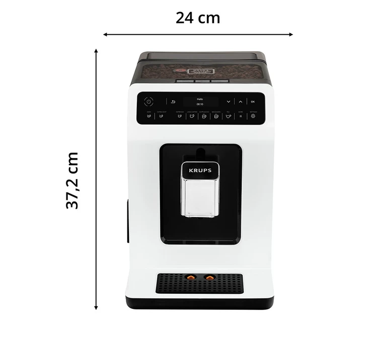 Fabriquée en France, la Krups Evidence One dispose d’un design élégant et efficace grâce à sa façade au design étonnant. Sa carrosserie est en ABS mat et brillant.