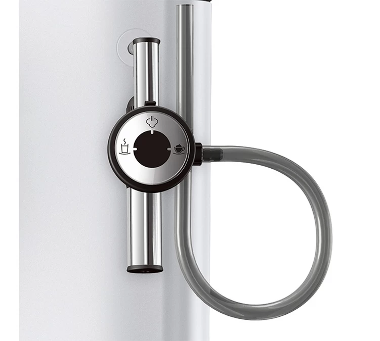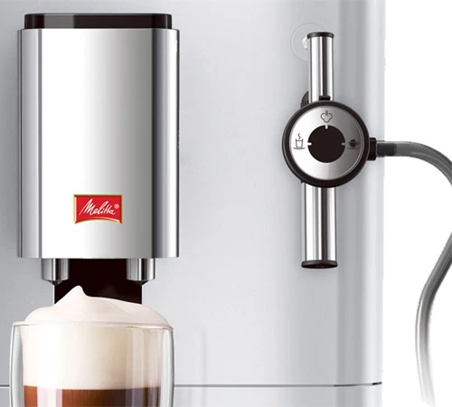 La Melitta Passione Argent est équipée d’une buse à lait automatique, aussi appelée Cappuccinator. Grâce à cette buse, vous pourrez en toute simplicité monter une mousse de lait fine et onctueuse et ce, sans savoir faire particuler. Lancez la boisson et le tour est joué !