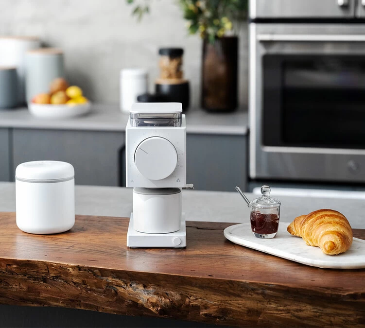 Un PID (plus connu sur les machines expresso), qui régule la vitesse du moteur pour que les grains de café soient broyés uniformément tout au long de l’opération.