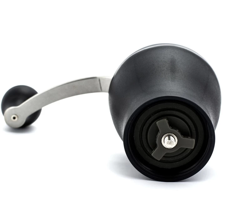 Le design Slim et la possibilité d’enlever la poignée économise de l’espace, cette poignée en aluminium renforcé se fixe au moulin par une vis hexagonale, ce qui l’empêche de se retirer lors du mouvement rotatif de broyage.