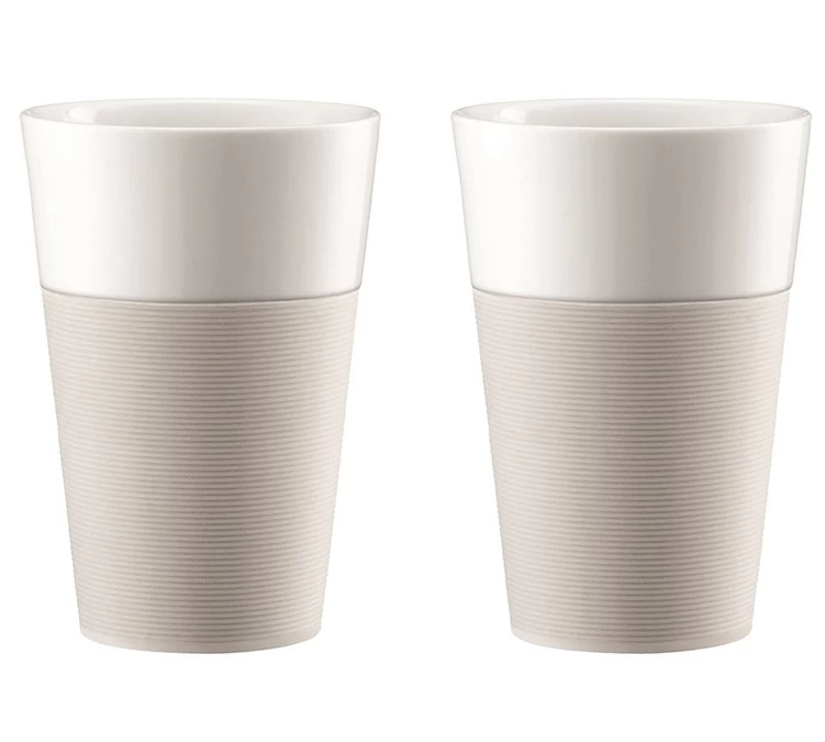2 tasses Bistro en porcelaine avec bande silicone blanche 60cl – Bodum