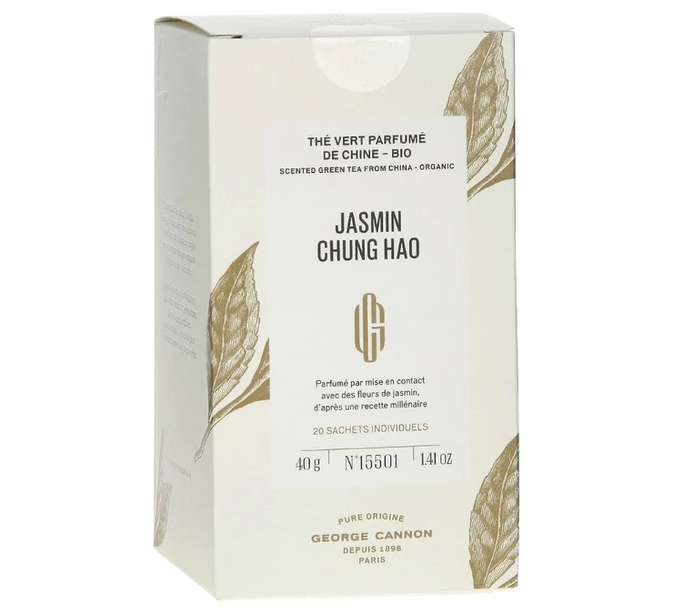 Ce thé vert bio cultivé en Chine a été séché avec des fleurs de jasmin. Vous retrouverez en tasse de douces notes fleuries. Rafraichissant et subtilement parfumé, ce Jasmin Chung Hao est un vrai délice. Issu de l’agriculture biologique.