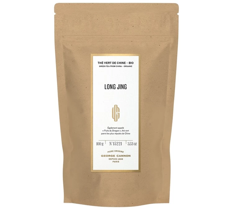 Ce thé vert bio cultivé en Chine est également appelé Puit du Dragon. Le Long Jing offre en tasse une boisson lumineuse, de couleur vert-jaune, aux notes légèrement boisées, évoquant les légumes verts cuits et une fin de bouche châtaigne. Conditionnement : sachet hermétique de 100g.