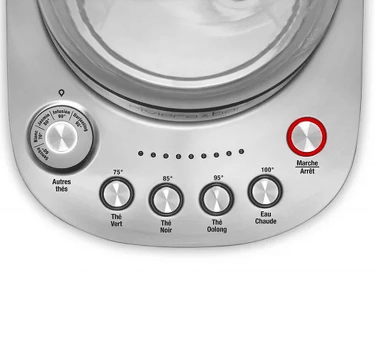 8 niveaux de températures sont programmés 75, 85 et 95 °C et 5 en fonction de la couleur de thé (Sencha, thé blanc, Infusion, Jasmin, Darjeeling). Un mode ébullition à 100 °C est disponible.