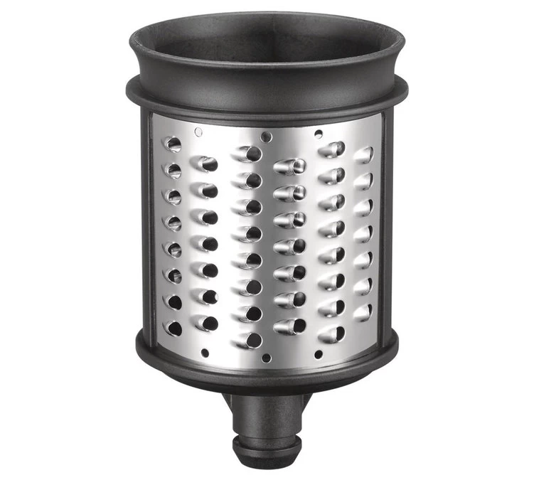 Facilitez votre quotidien en utilisant ce tranchoir/râpe compatible avec le robot pâtissier Artisan de KitchenAid. Ils se fixent sur le moyeu de fixation polyvalent du robot KitchenAid.
