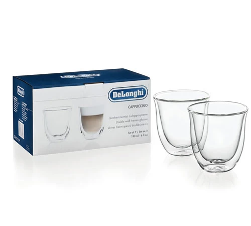 Les verres Cappu de Delonghi sont parfait pour réaliser de délicieux cappuccinos. Ils sont double-paroi pour conserver la température de votre boisson plus longtemps et ne pas vous bruler en prenant votre tasse. Capacité 19 cl